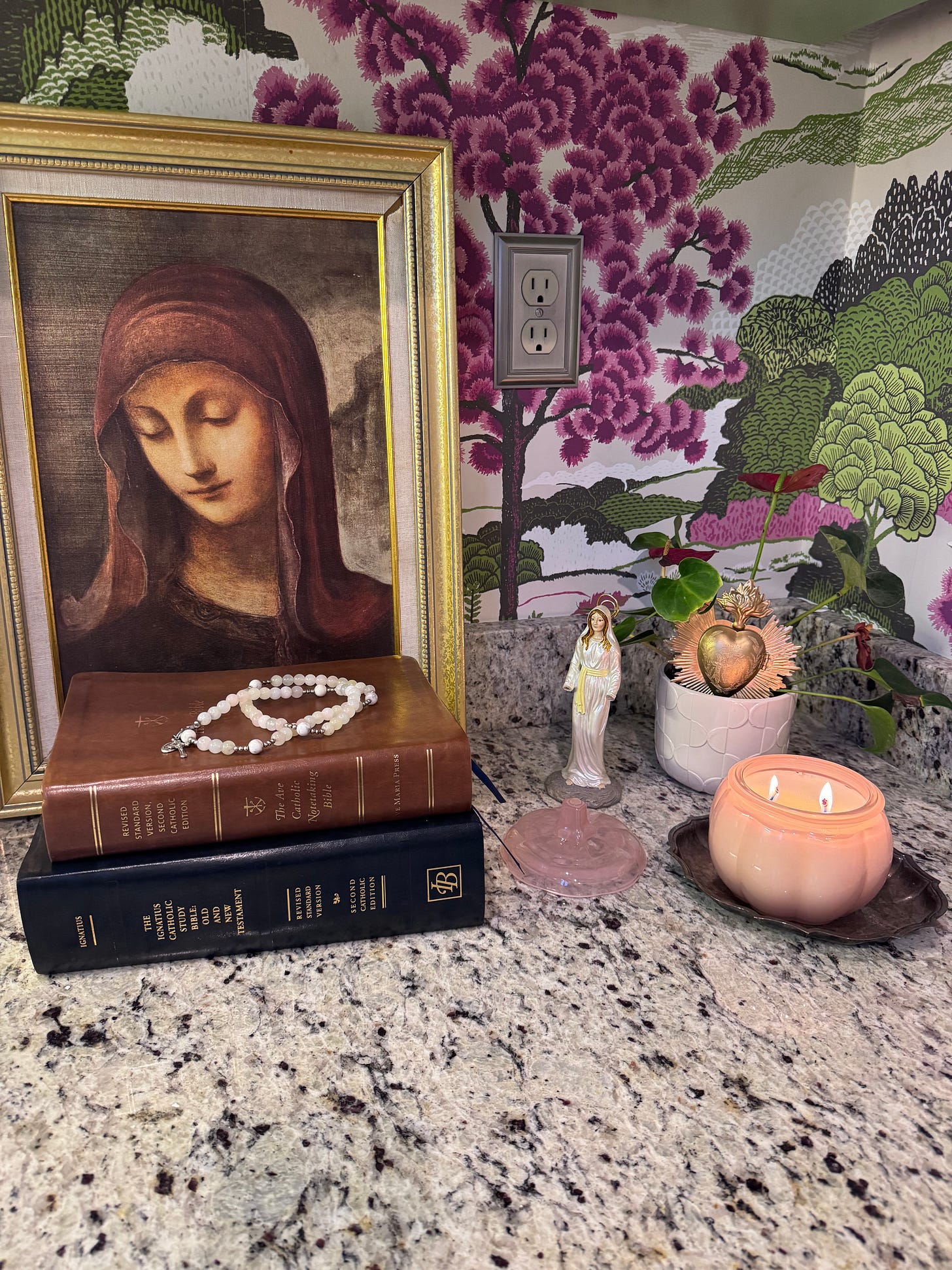 I am not a theologian, or even close. I graduated from a secular university and I studied Social Studies Education many, many years ago. I was a teacher before I retired and became a mom, which has been my full time job for the past 25 years. I have been learning about my faith since my conversion in 2005, slowly taking in the wisdom of the Church, the saints, and Sacred Scripture, as well as all the beautifully humbling lessons that motherhood continues to teach me throughout these years. It is all a tapestry of grace and truth that anchors my heart in my writing and my life.